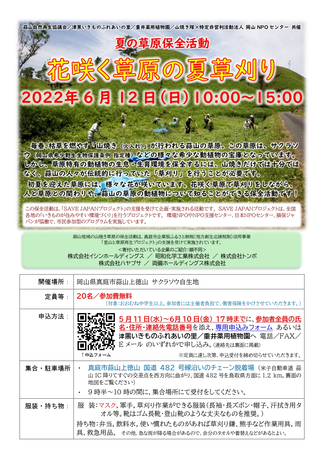 日時2022年6月5日(日)場所那岐の茶の間奈義町中島東464-1【問い合わせ】那岐の茶の間