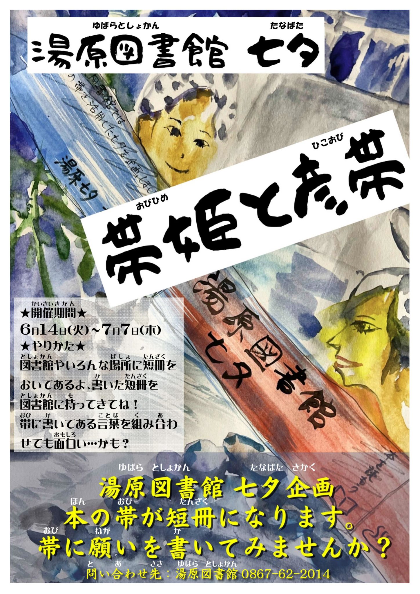 本の帯が短冊になります。帯に願いを書いてみませんか?日時2022年6月14日(火)~7月7日(木)場...