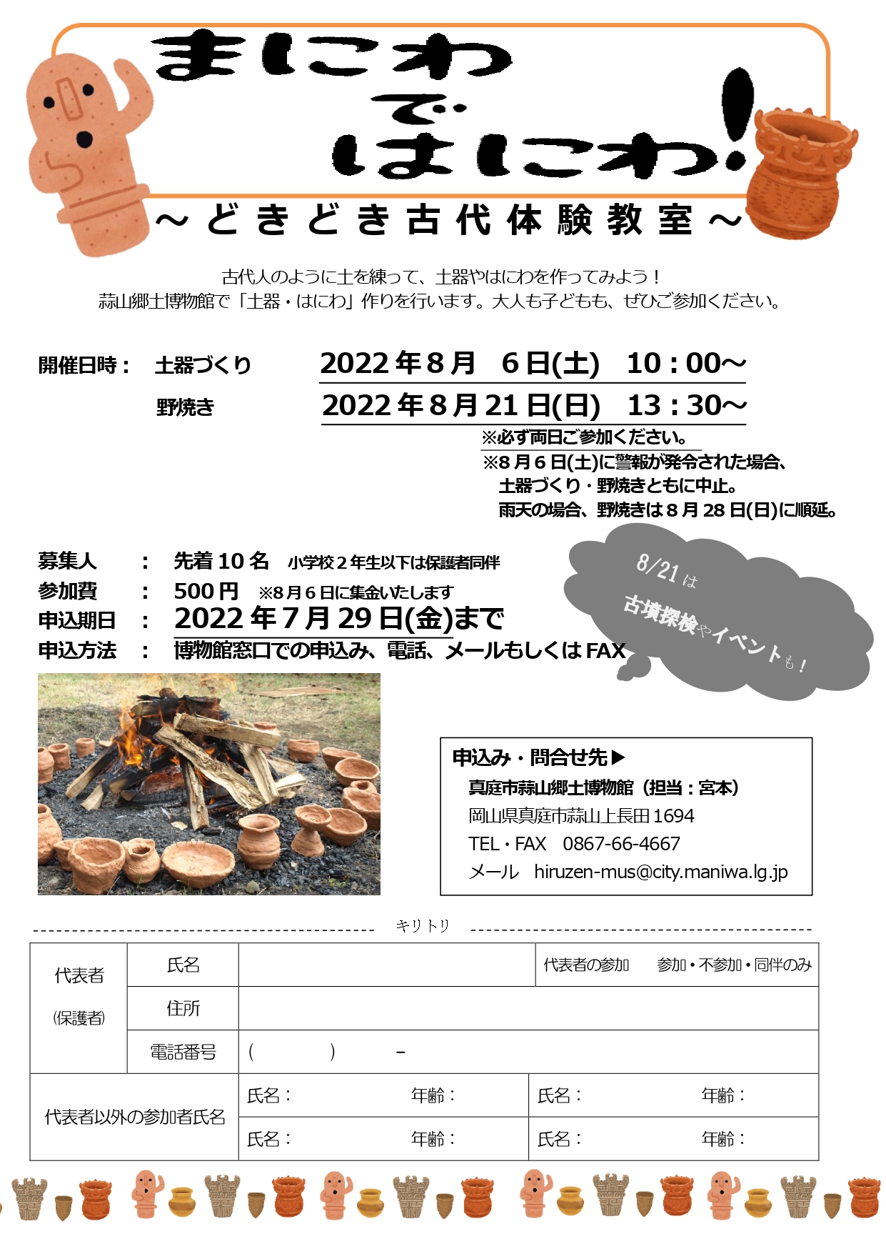 古代人のように土を練って、土器やはにわを作ってみよう!蒜山郷土博物館で「土器・はにわ」作りを行います...