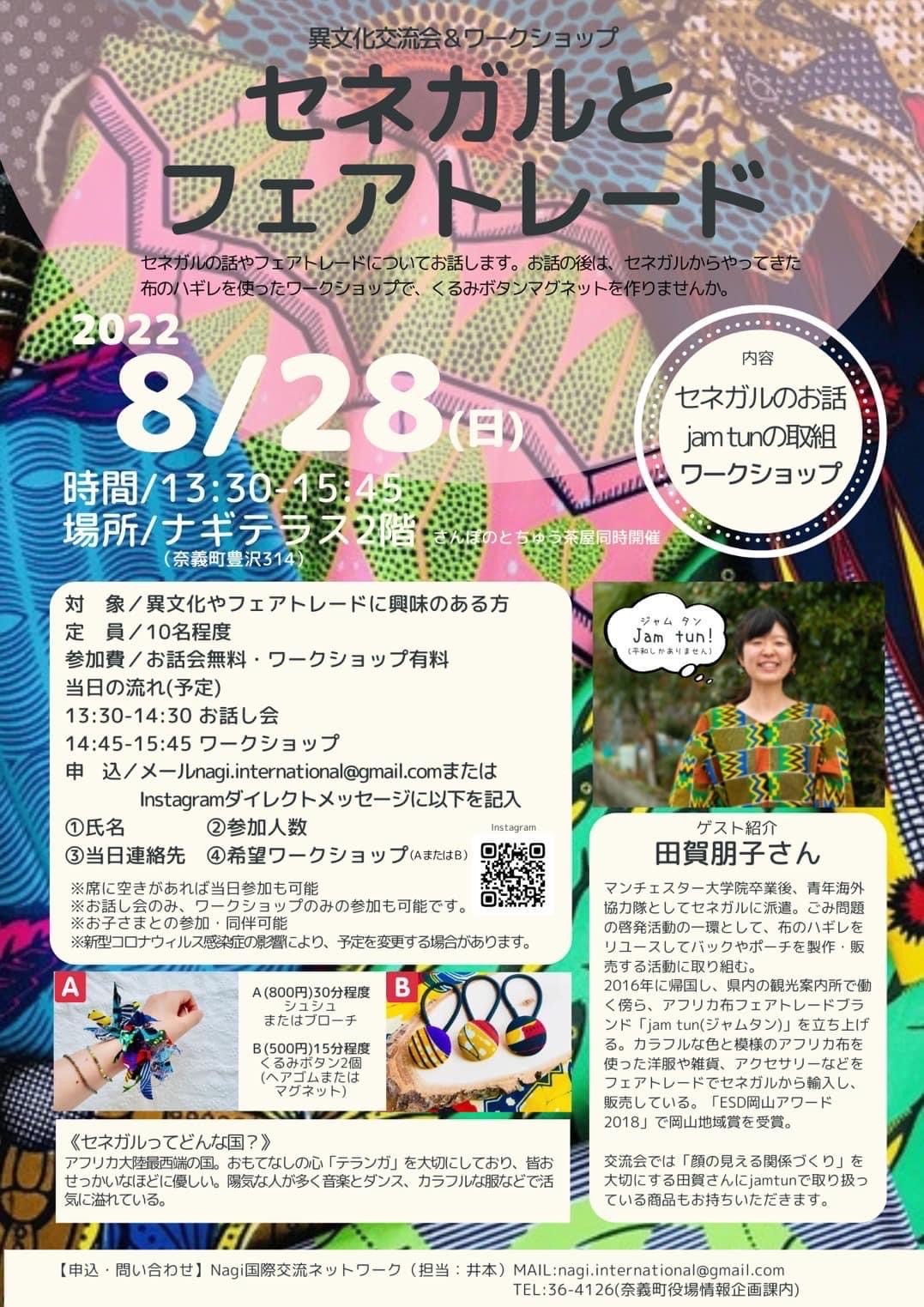 セネガルやフェアトレードについての話。セネガルからやってきたハギレを使ってたワークショップも開催。日...