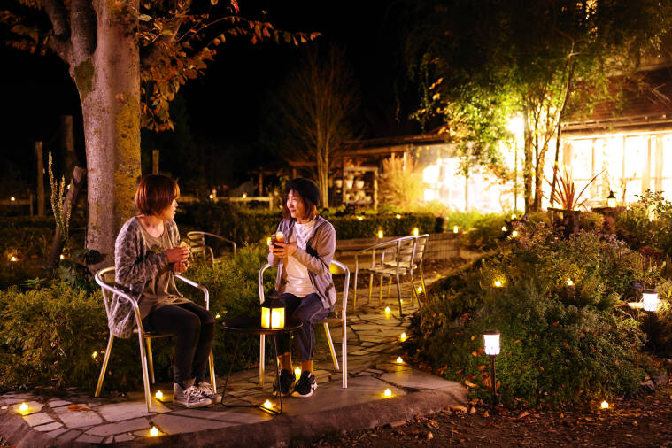 通常は夜間営業を行わない蒜山ハーブガーデンハービルで高原の解放感の中、彩られたキャンドル空間をお楽し...
