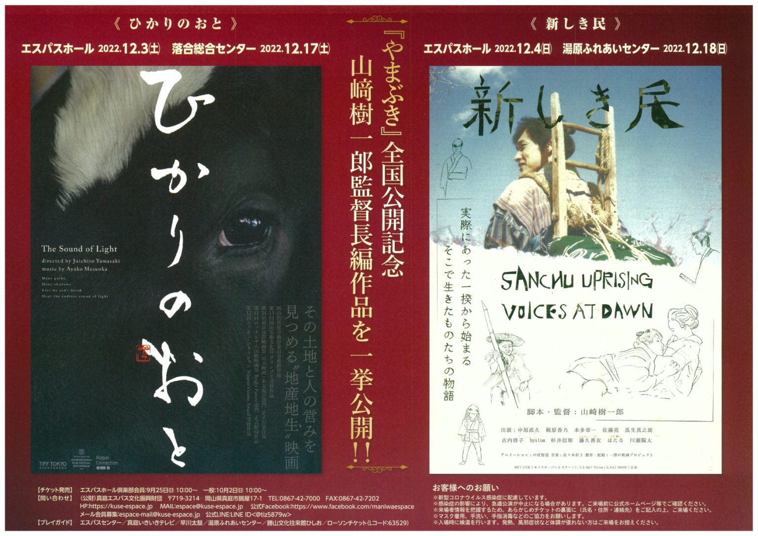 真庭市在住の映画監督・山﨑樹一郎の新作「やまぶき」全国公開に伴い過去2作品の上映を行います。また、高...
