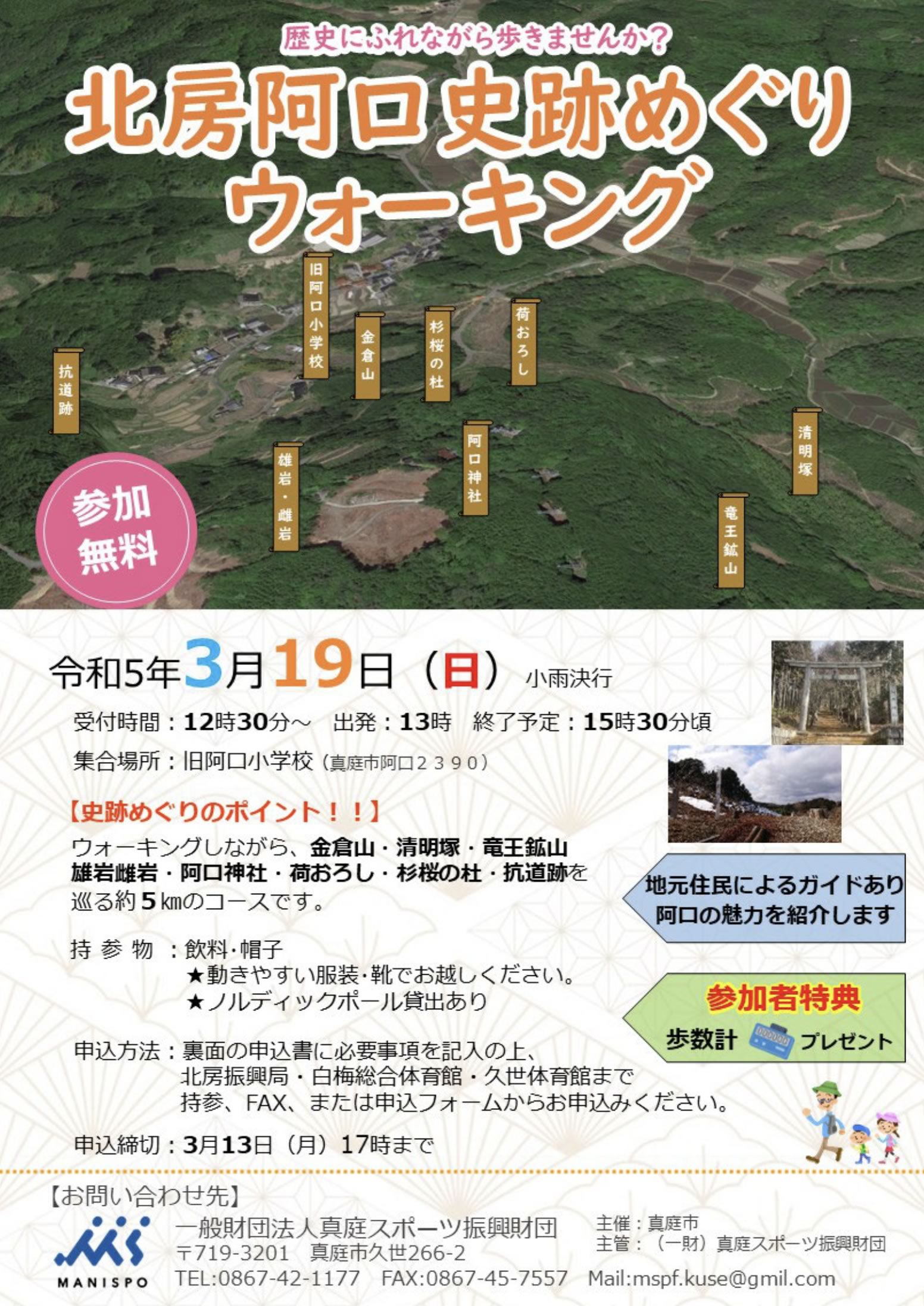 阿口地区の歴史にふれながら歩きませんか?地元住民によるガイドの元、阿口地区の史跡を巡ります。コースは...