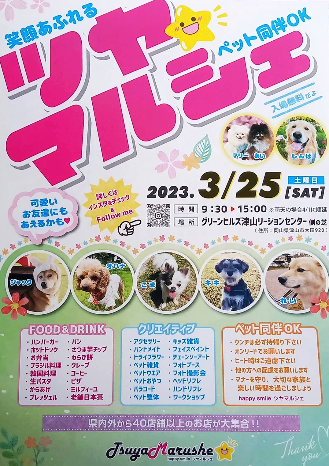 グリーンヒルズ津山で、笑顔溢れるマルシェを開催予定。日時2023年3月25日(土)場所グリーンヒルズ...