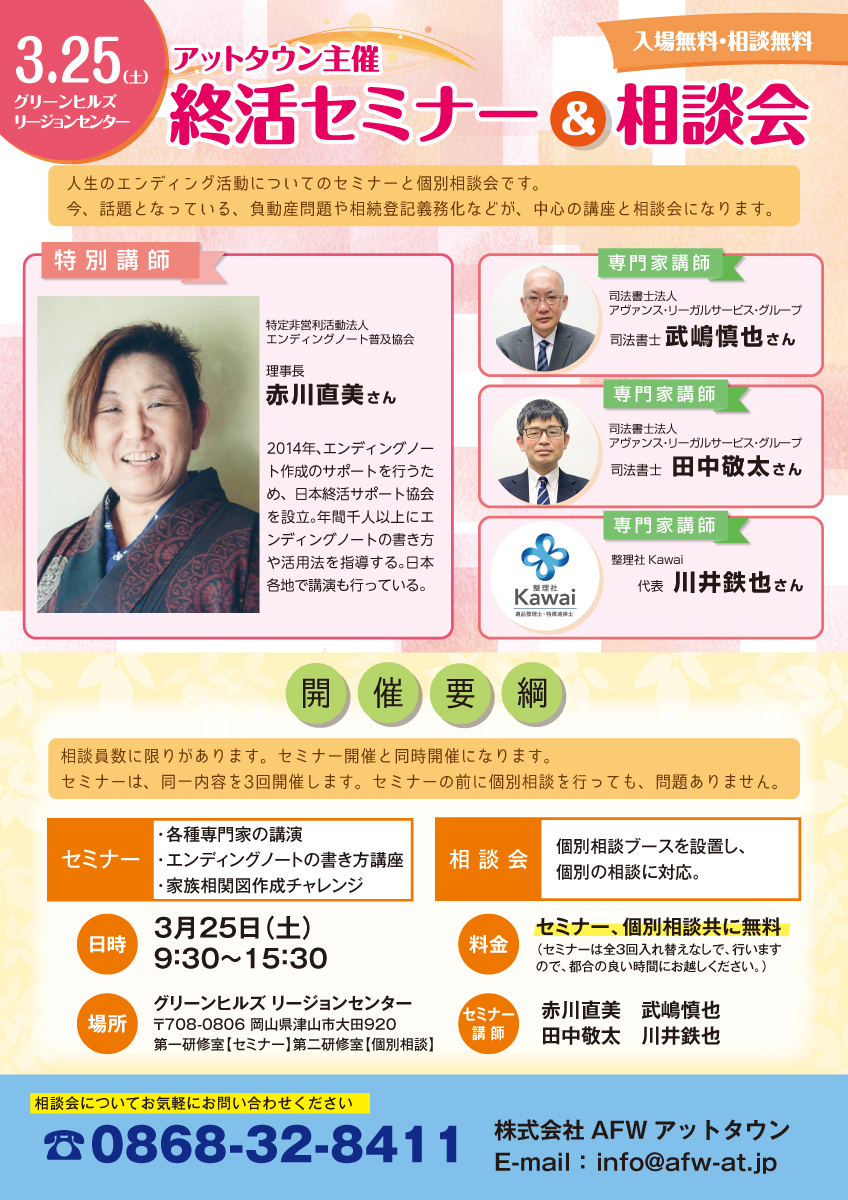 日時2023年3月21日(火)場所グリーンヒルズ津山リージョンセンター津山市大田920【問い合わせ】...