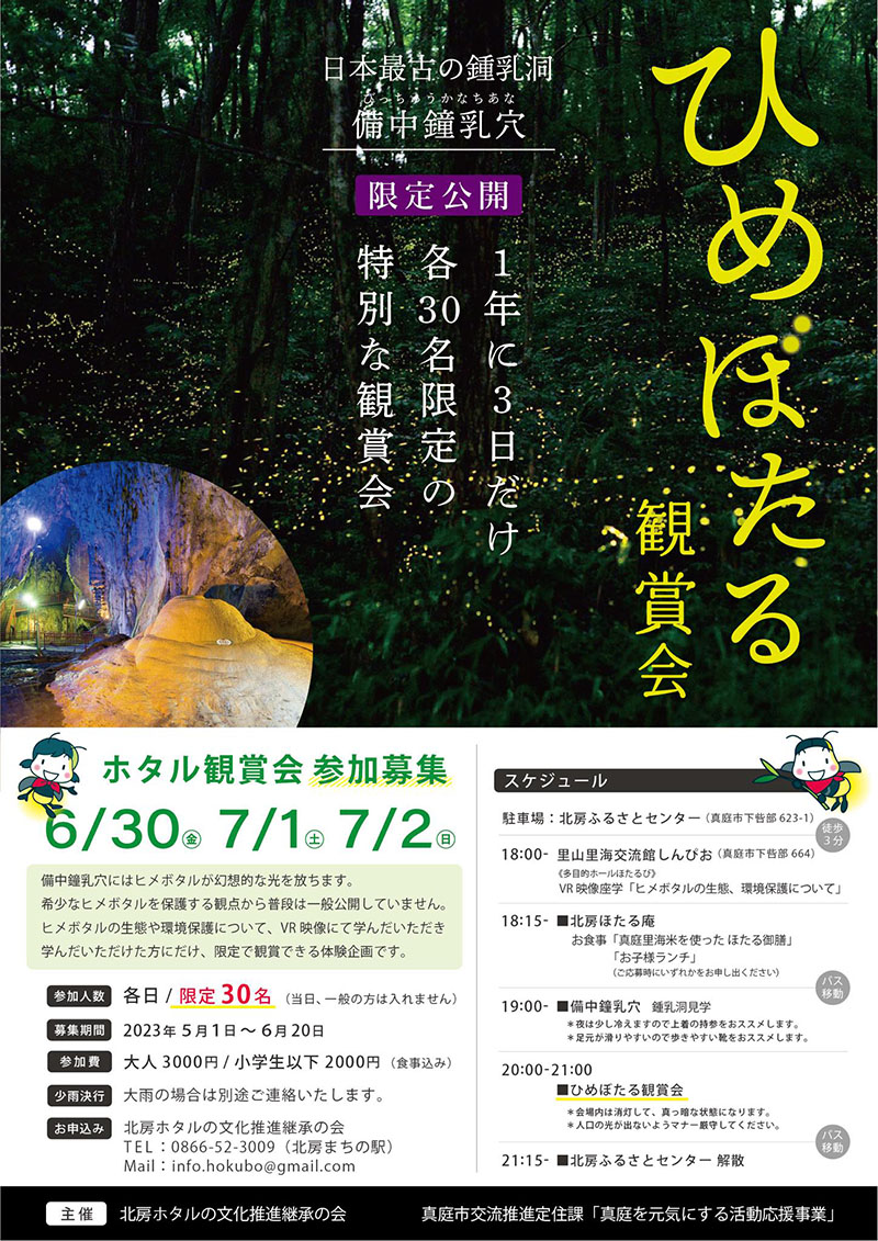 この度、今後の保護活動や北房のPR活動に使用する「ホタルのキャラクター〈男の子・女の子〉」の名前を募...