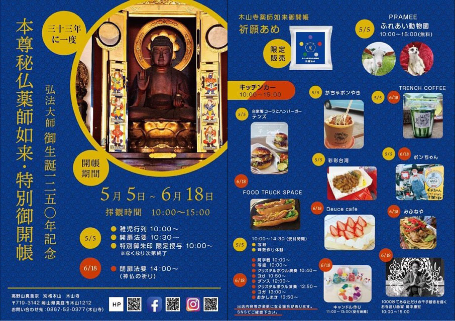 33年に一度しか見ることの出来ない御本尊薬師如来のご開帳お披露目と弘法大師御生誕1250年記念に大師...