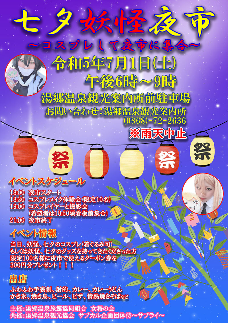 妖怪、七夕のコスプレ(着ぐるみ可)もしくは妖怪、七夕のグッズを持ってきてくださった方限定100名様に...