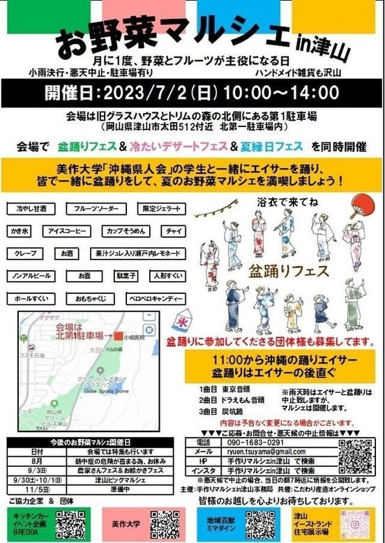 【日程】2023年7月2日(日)【時間】10:00~14:00【会場】トリムの森北側の第一駐車場(津...