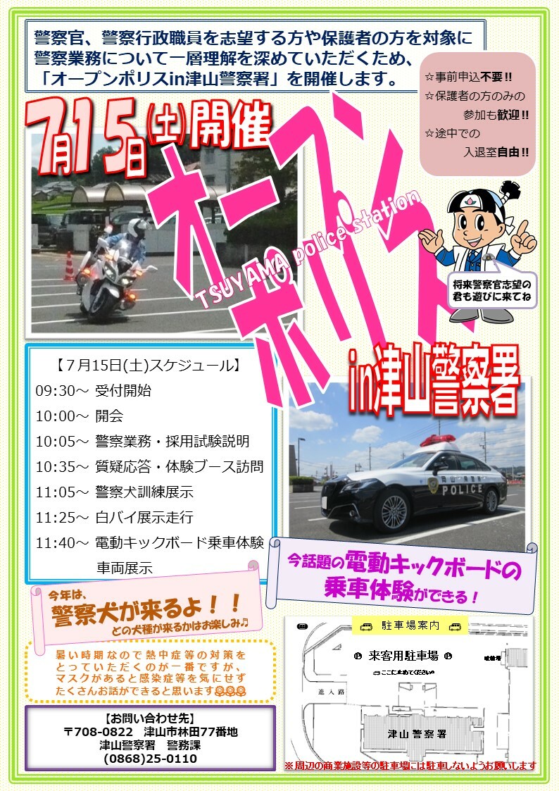 警察官、警察行政職員を志望する方や保護者の方を対象に、警察業務について一層理解を深めていただくため、...