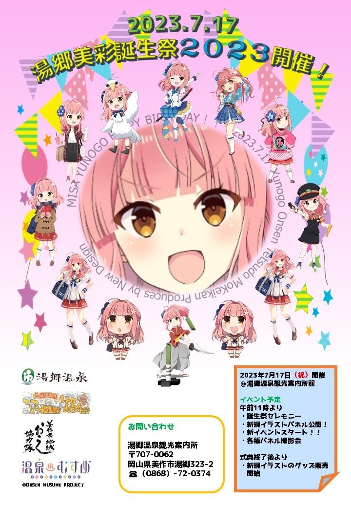 日時2023年7月17日(月)場所湯郷温泉観光案内所 美作市湯郷323-2【問い合わせ】湯郷温泉観光...