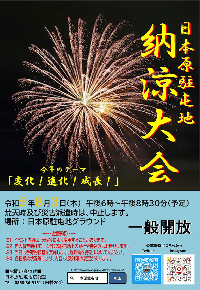 【日程】令和5年8月3日(木)※荒天時及び災害派遣時は、中止します。【時間】18:00~20:30【...