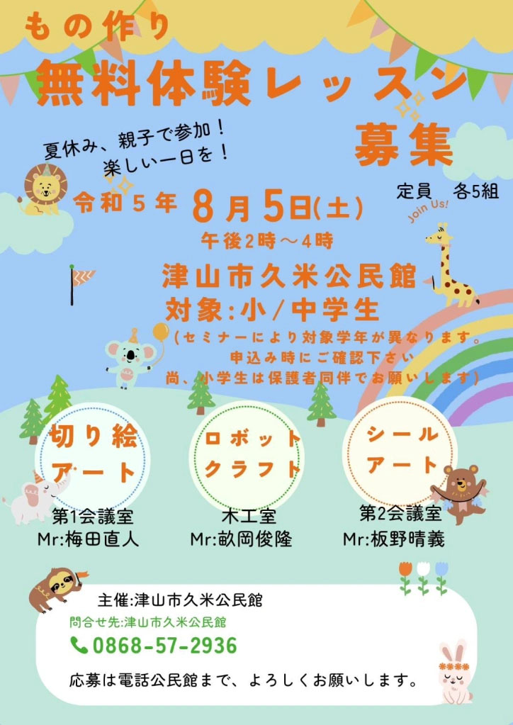 【日程】2023年8月6日(日)【時間】10:00~14:00【場所】阿波森林公園(津山市阿波310...