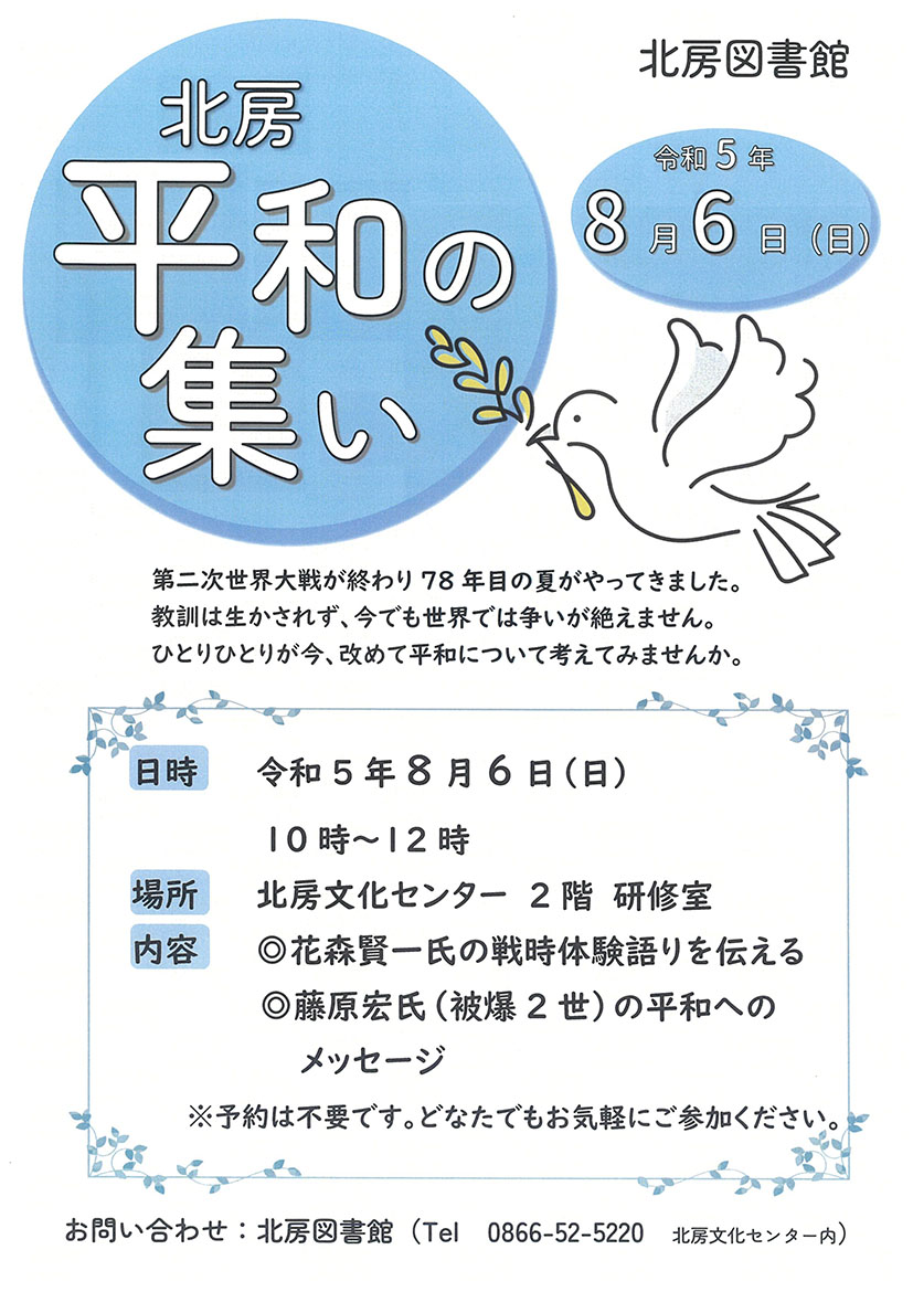 一人ひとり、今改めて平和と戦争について考えてみませんか。予約は不要です。どなたでもお気軽にご参加くだ...