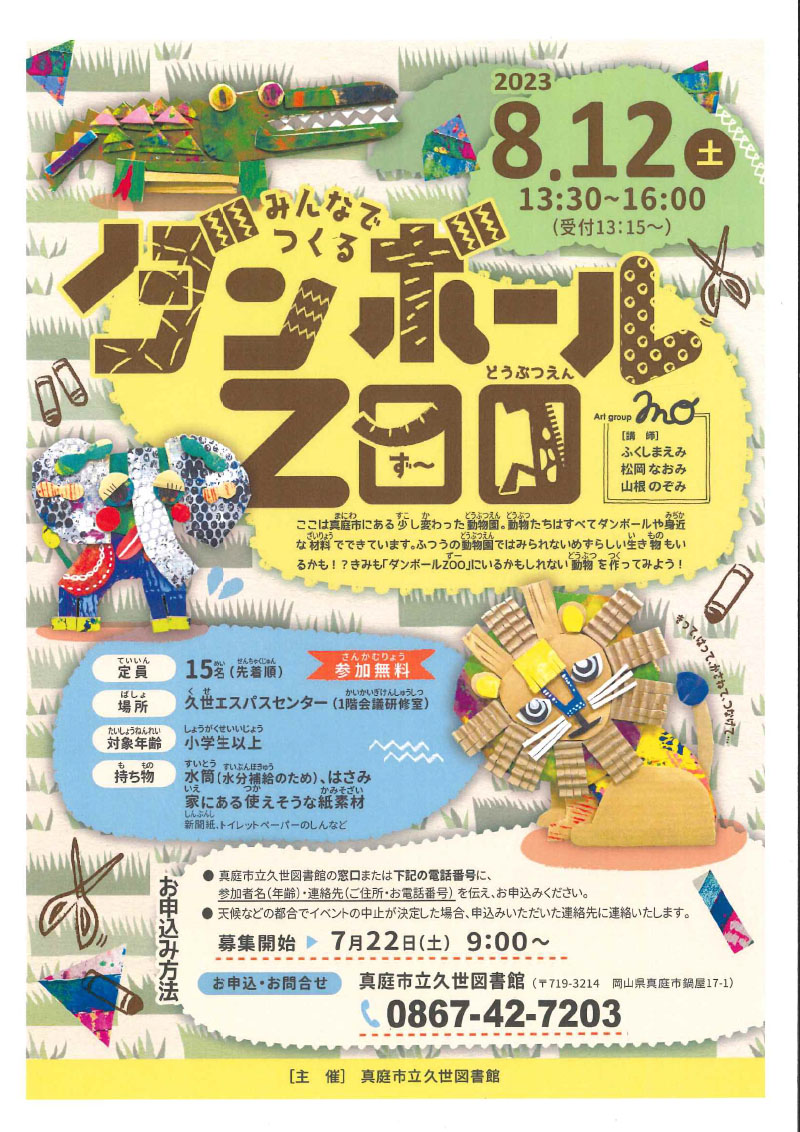 きみも「ダンボールZOO」にいるかもしれない動物を作ってみよう!【日程】令和5年8月12日(土曜日)...