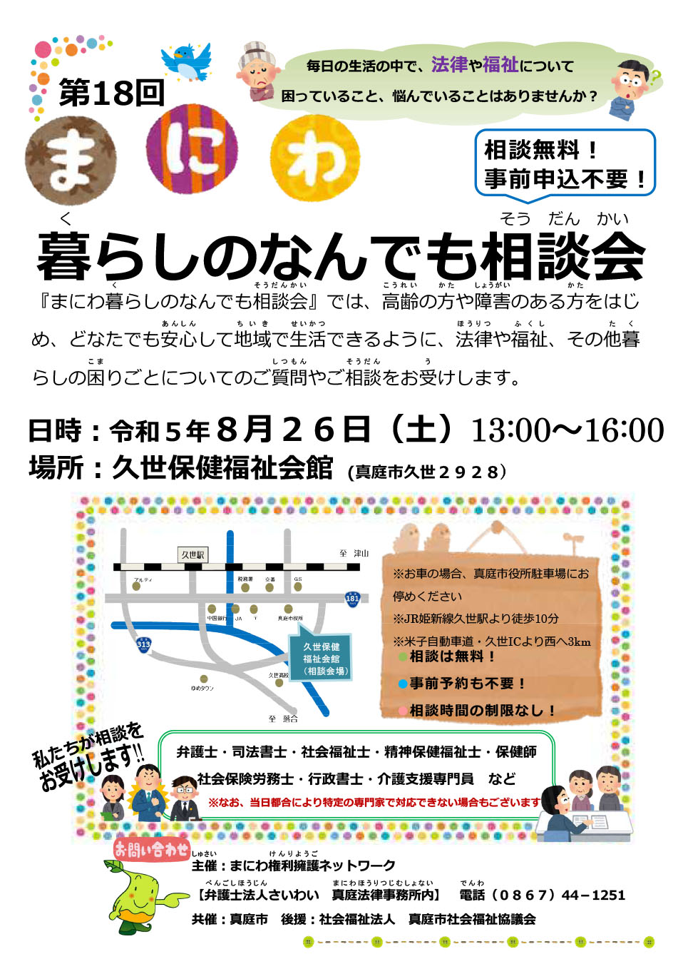 困っていることや悩んでいることがある人は、この機会にお気軽にご相談ください。【日程】令和5年8月26...