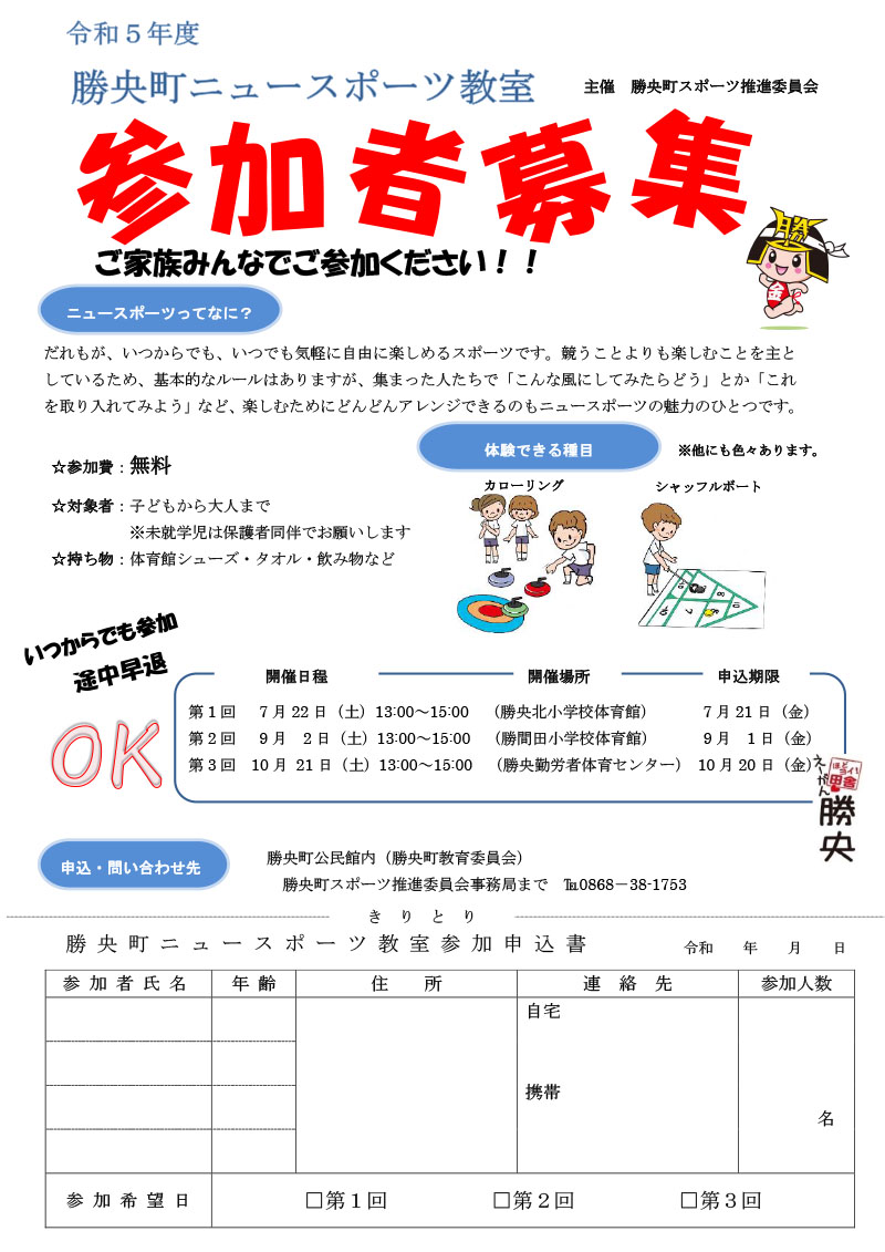 ご家族みんなでご参加ください!!【日程】第1回7月22日(土)13:00~15:00(勝央北小学校体...