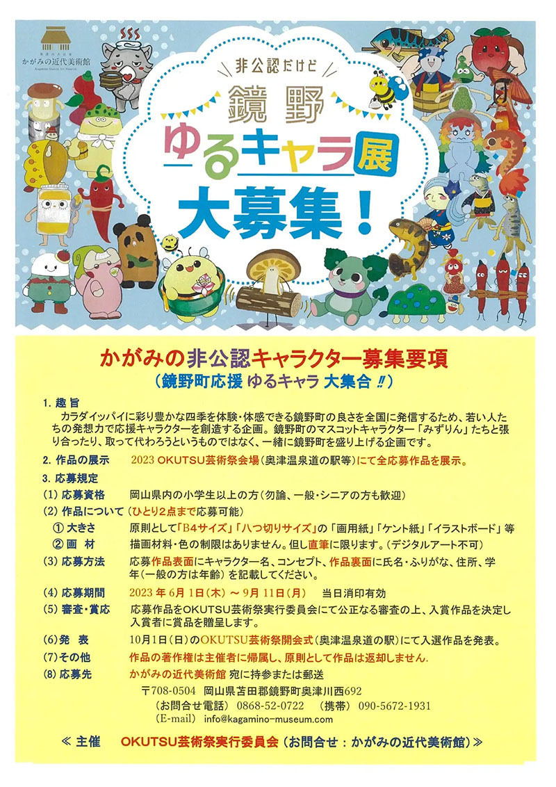 10月1日から開催する第5回OKUTSU芸術祭では、アートイベントのひとつとして「鏡野町非公認キャラ...