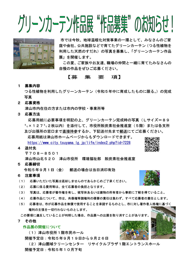 この夏、みなさんが育てた自慢の作品をぜひご応募ください。【募集内容】つる性植物を利用したグリーンカー...