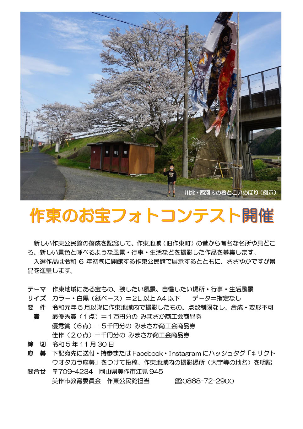 新しい作東公民館の落成を記念して、作東地域(旧作東町)の昔から有名な名所や見どころ、新しい景色と呼べ...