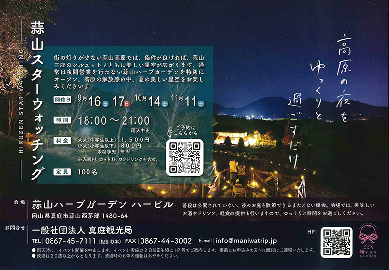 高原の夜をゆっくりと過ごすだけ【日程】※悪天候の場合は中止(開催2日前判断)9月16日(土)、17日...