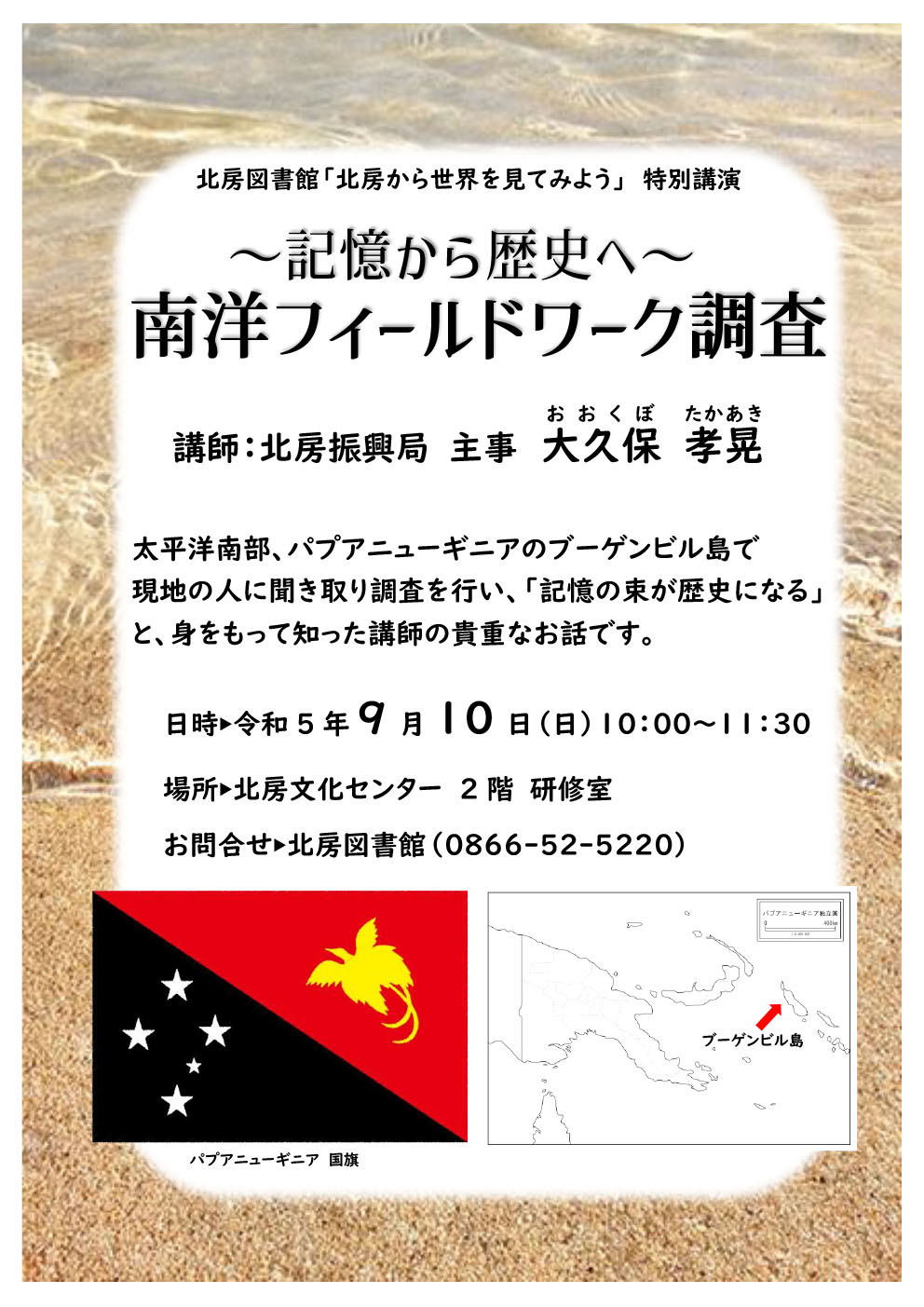北房図書館「北房から世界を見てみよう」特別講演太平洋南部、パプアニューギニアのブーゲンビル島で現地の...