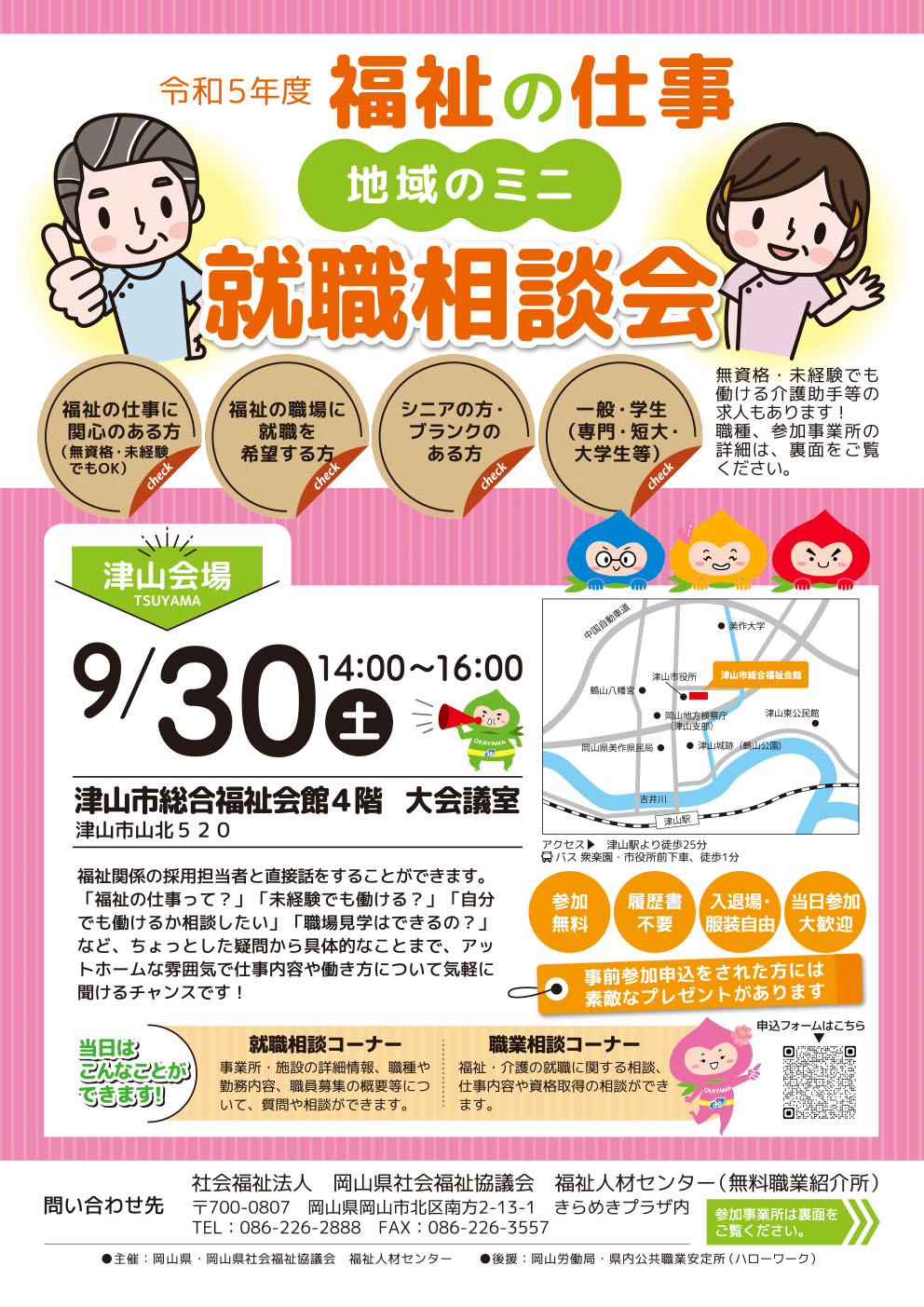 事業所のブースに行ってお話を聞く、地域ごとの小規模な相談会です。福祉関係の採用担当者と直接話をするこ...