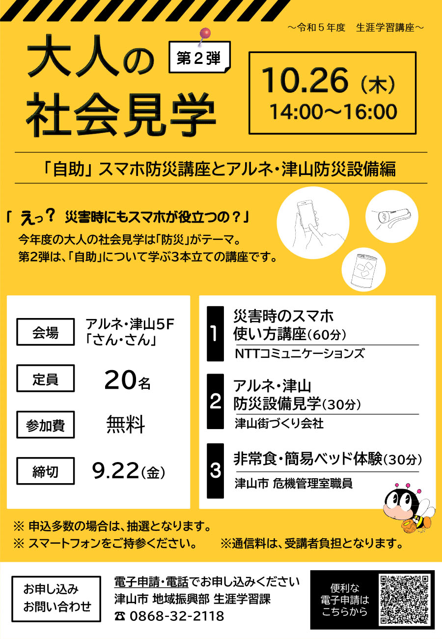 【日程】令和5年10月26日(木曜日)【時間】午後2時から4時(受付1時30分から)【会場】津山男女...