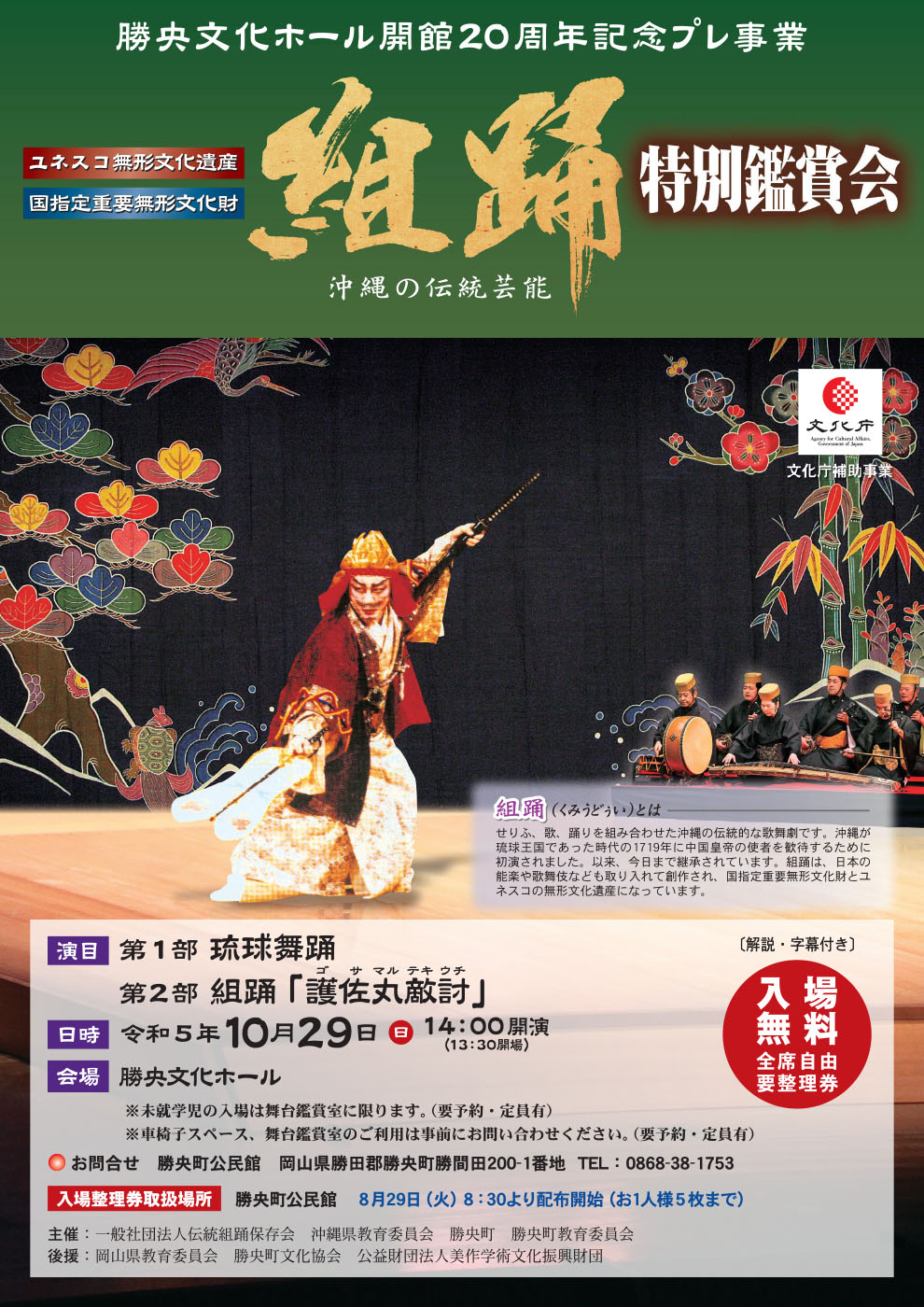 【日程】令和5年10月29日【時間】13:30開場 14:00開演【会場】勝央文化ホール(勝田郡勝央...