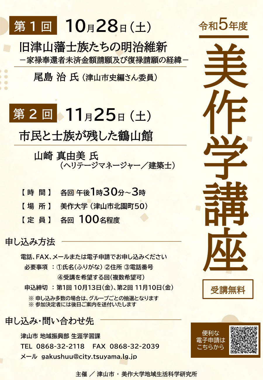 【日程】令和5年10月22日(日曜日)【時間】13時30分から15時30分【参加費】無料【会場】津山...