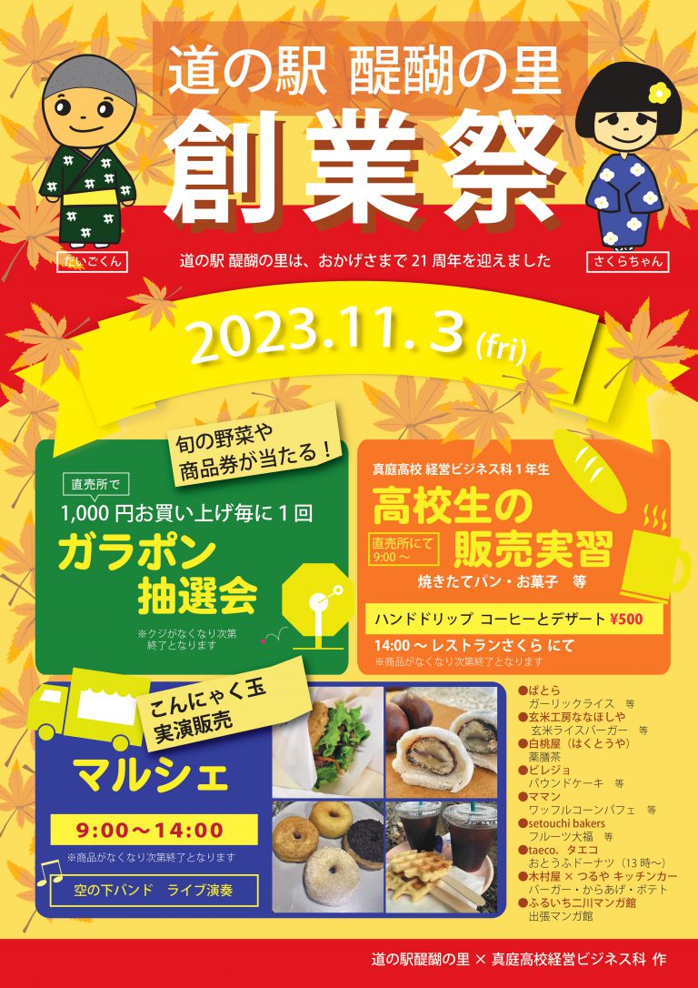 【日程】令和5年11月3日【時間】9:00~14:00【場所】道の駅醍醐の里【お問い合わせ】0867...