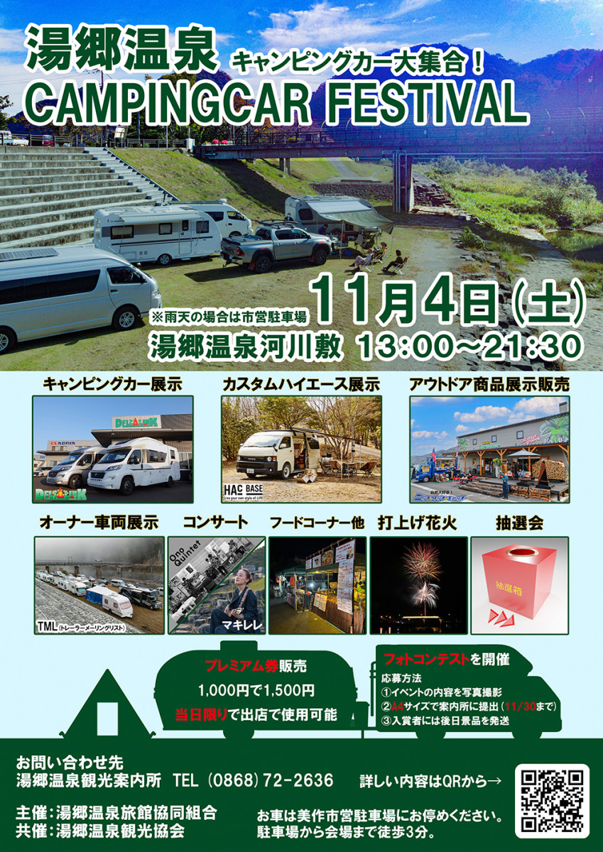 令和5年度11月4日(土)13:00~21:30に湯郷温泉キャンピングカーフェスティバルを開催いたし...