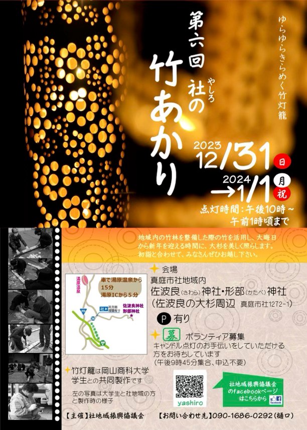 地域内の竹林を整備した際の竹を活用し、大晦日から新年を迎える時間に、大杉を美しく照らします。初詣と合...
