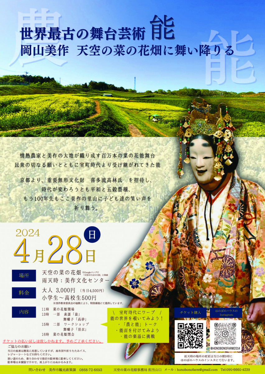【日程】2024年4月28日(日)【時間】13:00~【会場】天空の菜の花畑(美作市竹田地内 美作市...