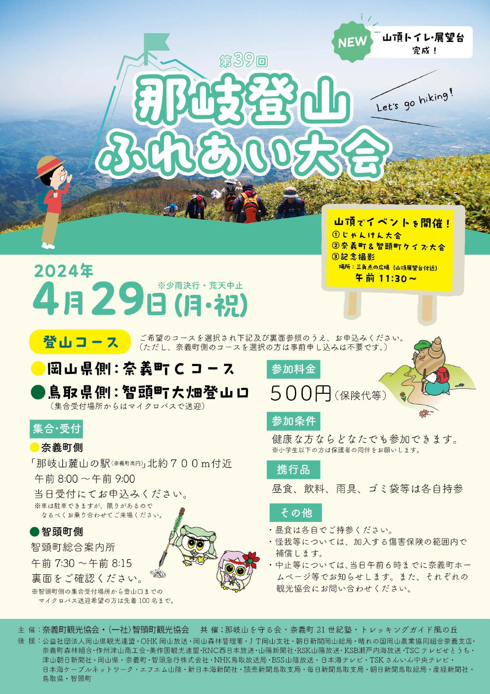 ※智頭町側からの参加は要予約となります。【日程】2024年4月29日(月・祝)【料金】500円(保険...