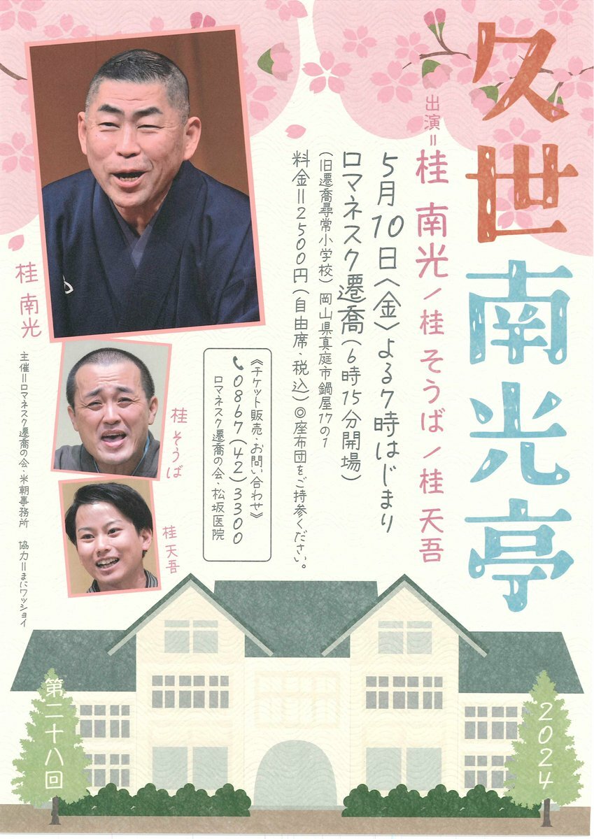 【日程】2024年5月10日(金)【時間】開場18:15/開演19:00【会場】旧遷喬尋常小学校(全...