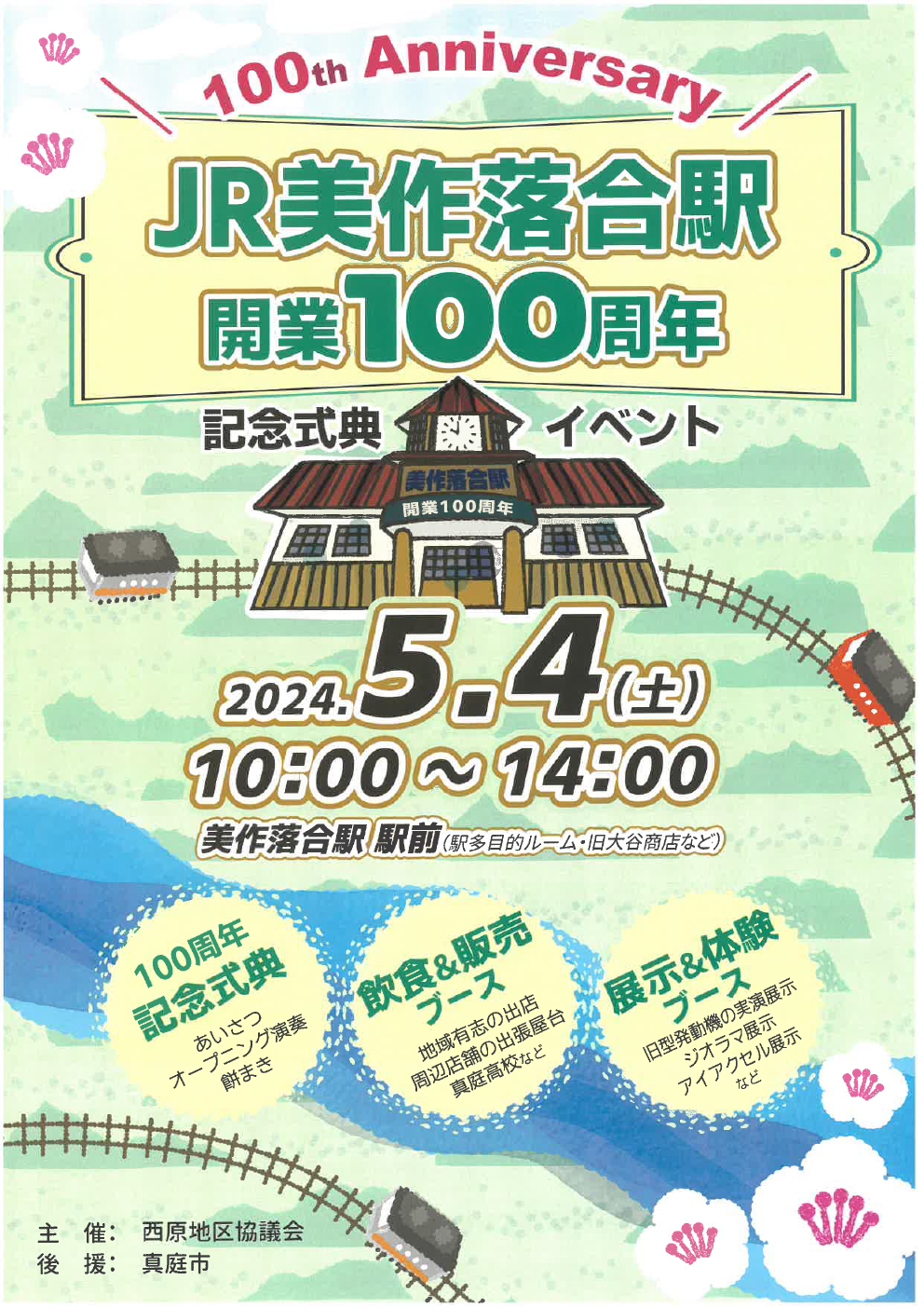 【日程】2024年5月4日(土)【時間】10:00~14:00【会場】JR美作落合駅 駅前(駅多目的...