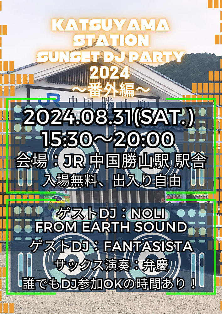【日程】2024年8月31日(土)【時間】15:30~20:00【会場】JR中国勝山駅舎(真庭市勝山...