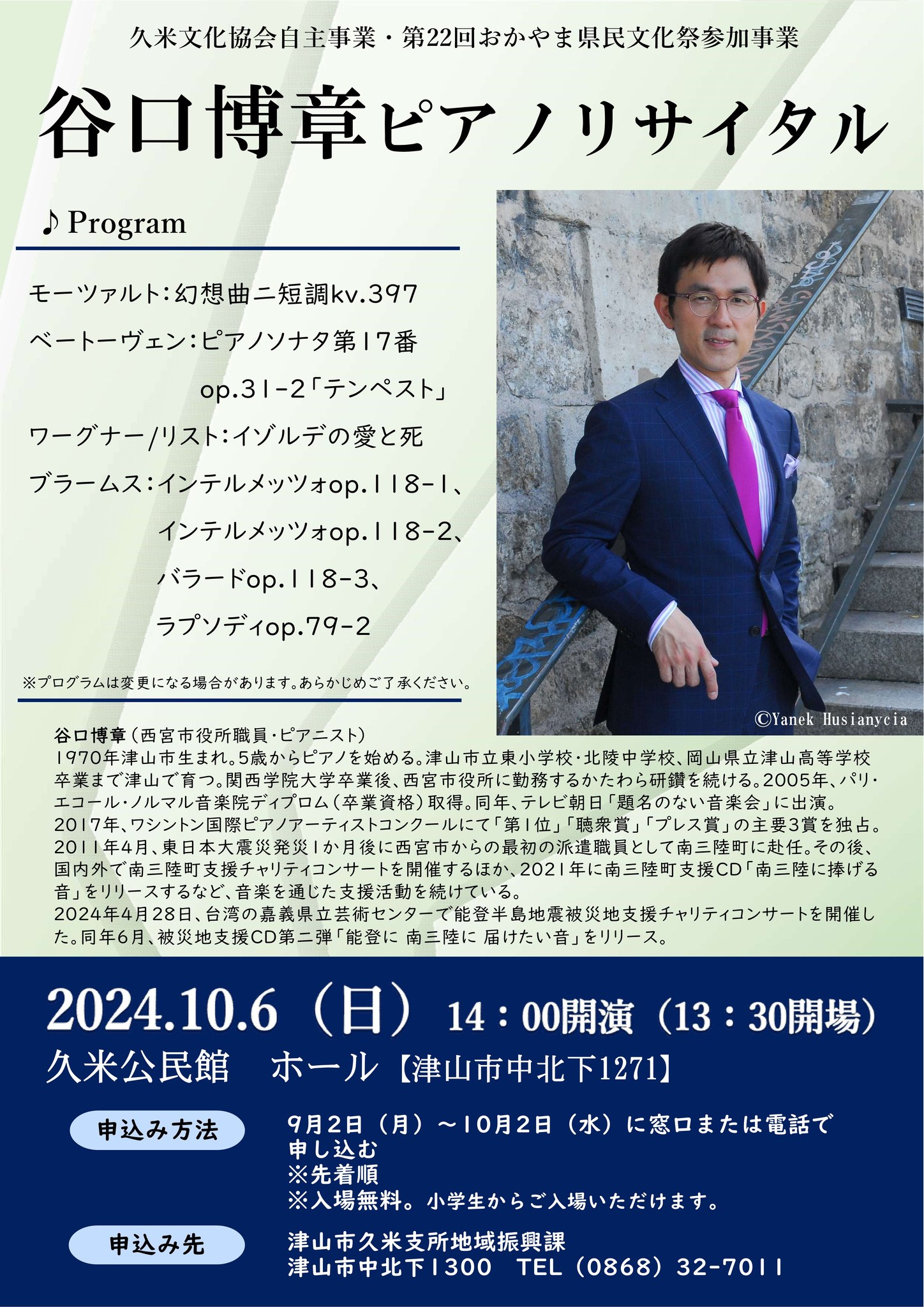 【日程】10月6日(日)【時間】午後2時(開場午後1時30分)【会場】久米公民館(津山市中北下127...