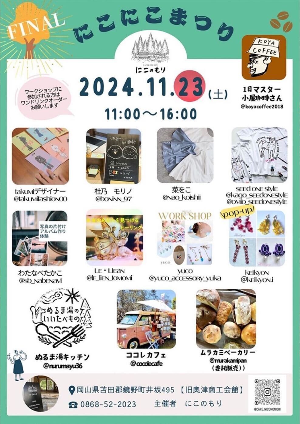 【日程】2024年11月23日【時間】11:00~16:00【会場】旧奥津商工会館(鏡野町井坂495...
