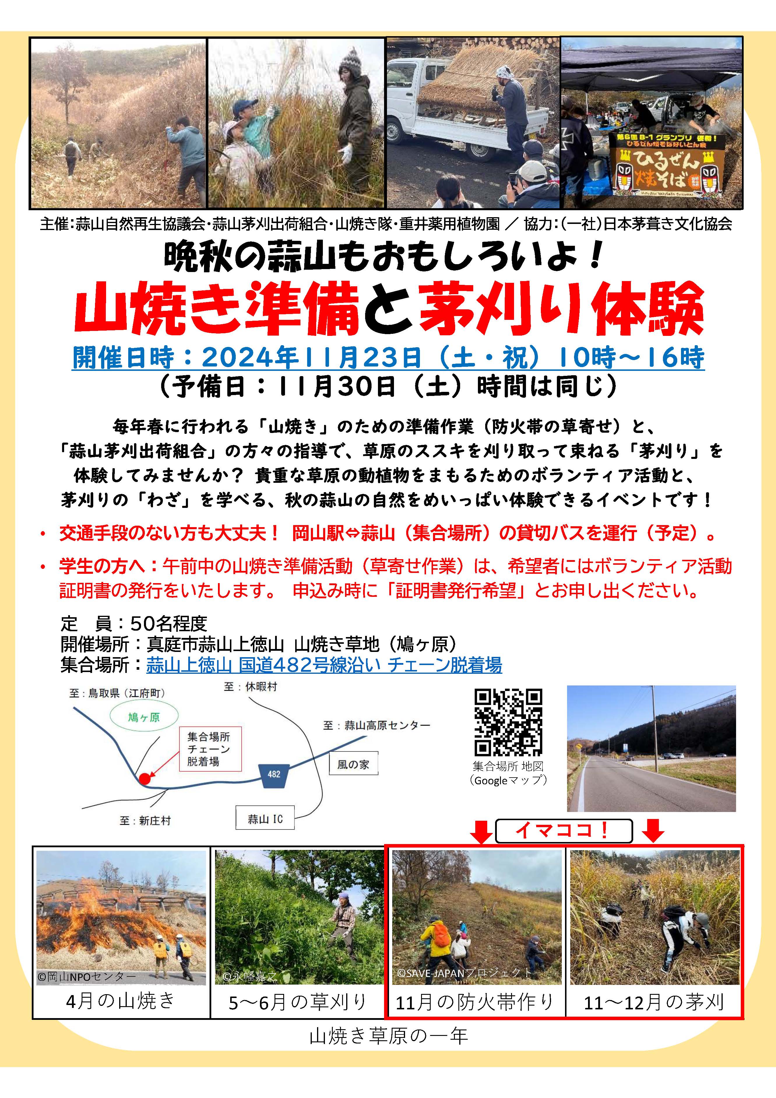 【日程】2024年11月23日(土)【時間】10:00~16:00【会場】集合:蒜山上徳山国道482...