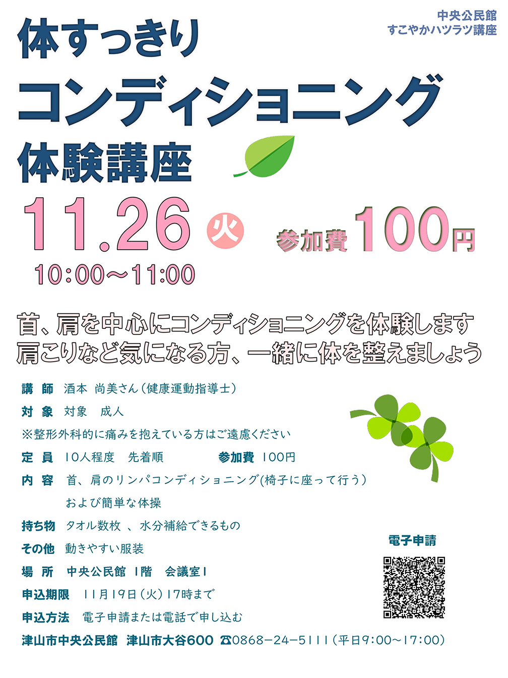 【日程】2024年11月26日(火曜日)【時間】午前10時~11時【会場】中央公民館(津山市大谷60...