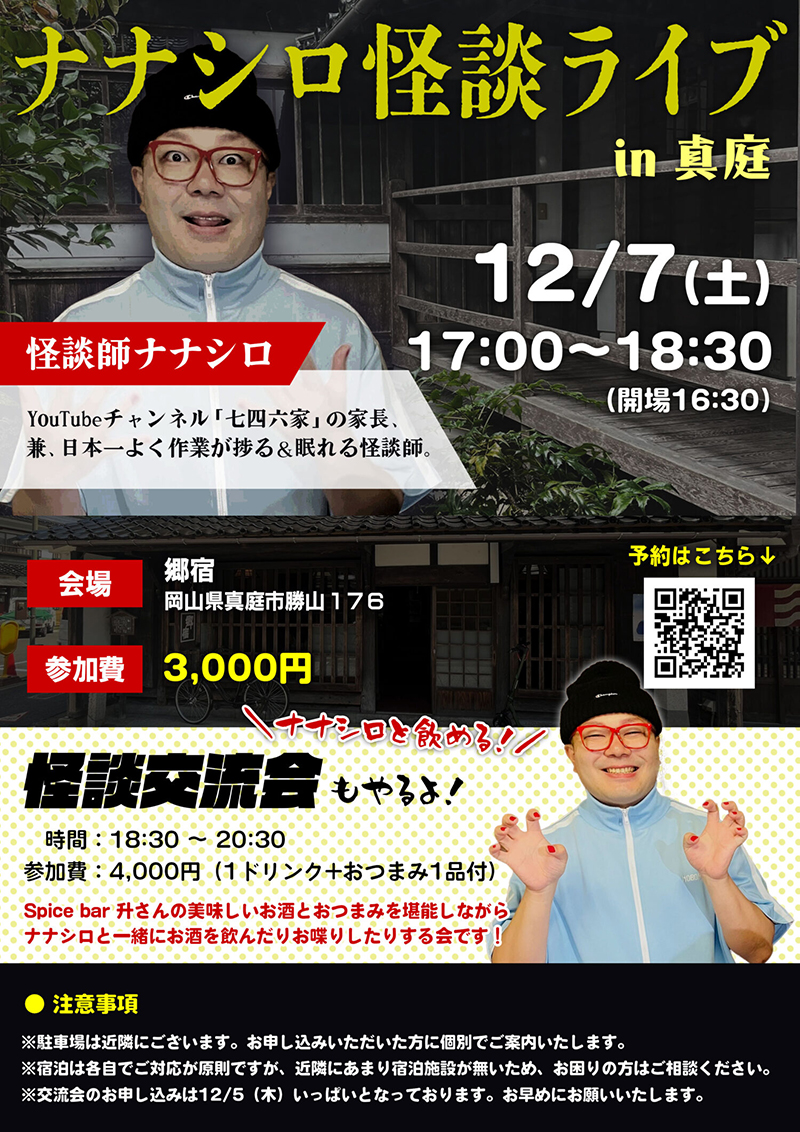 【日程】2024年12月07日 (土)【時間】17:00〜18:30(開場:16:30)①怪談ライブ...