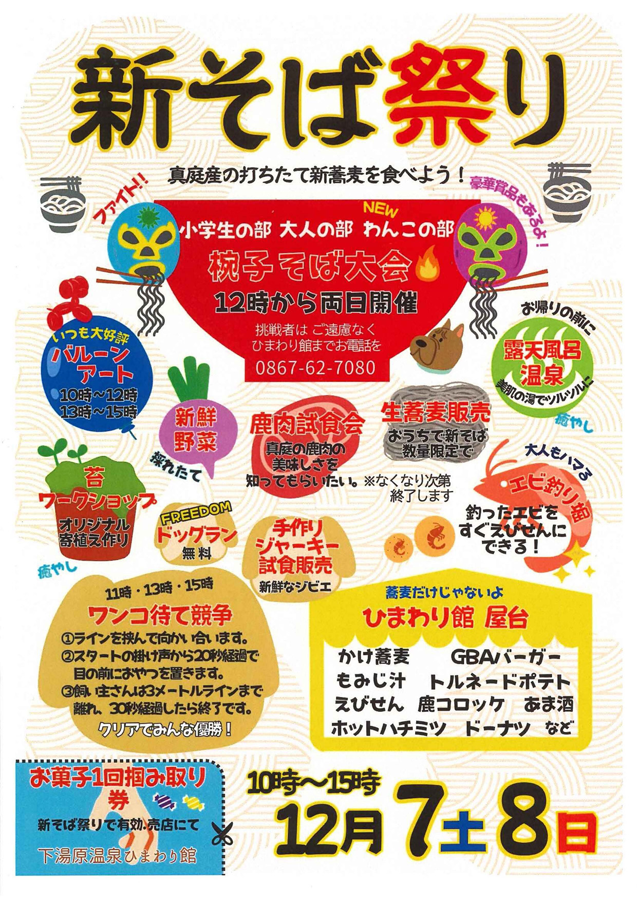 【日程】2024年12月7日(土)~8日(日)【時間】10時~15時【会場】下湯原温泉ひまわり館(真...