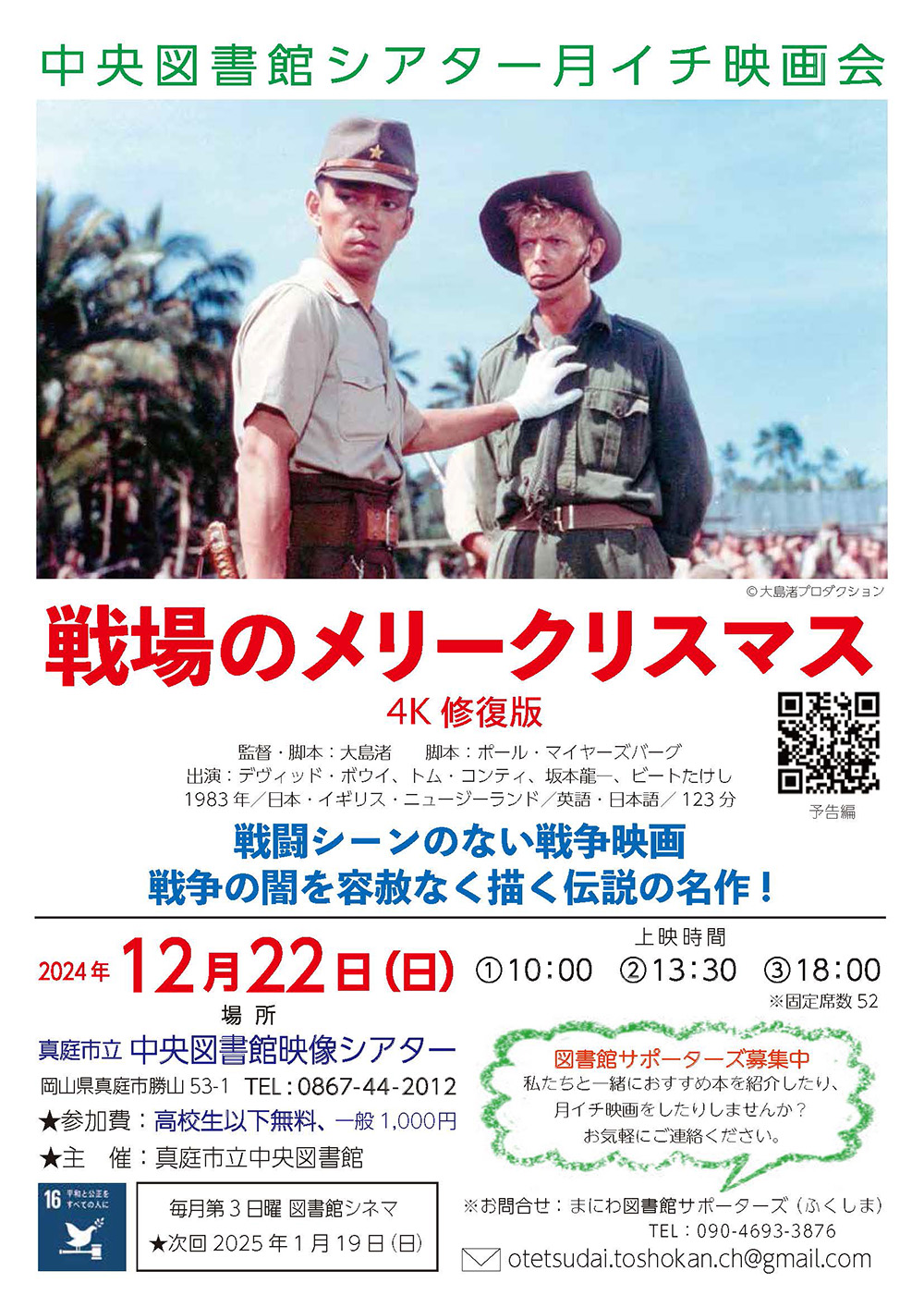 【期 間】12月22日(日)【時 間】①10:00~②13:30~③18:00~【場 所】真庭市立中...