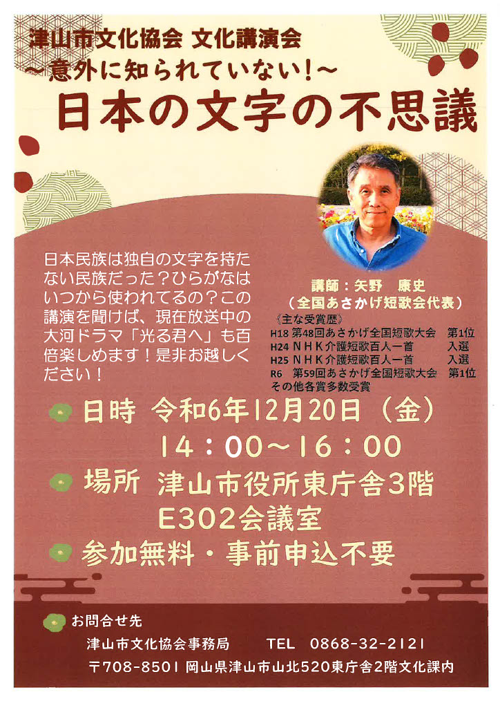 【日程】令和6年12月20日(金)【時間】14:00~16:00【会場】津山市役所東庁舎3階 E30...