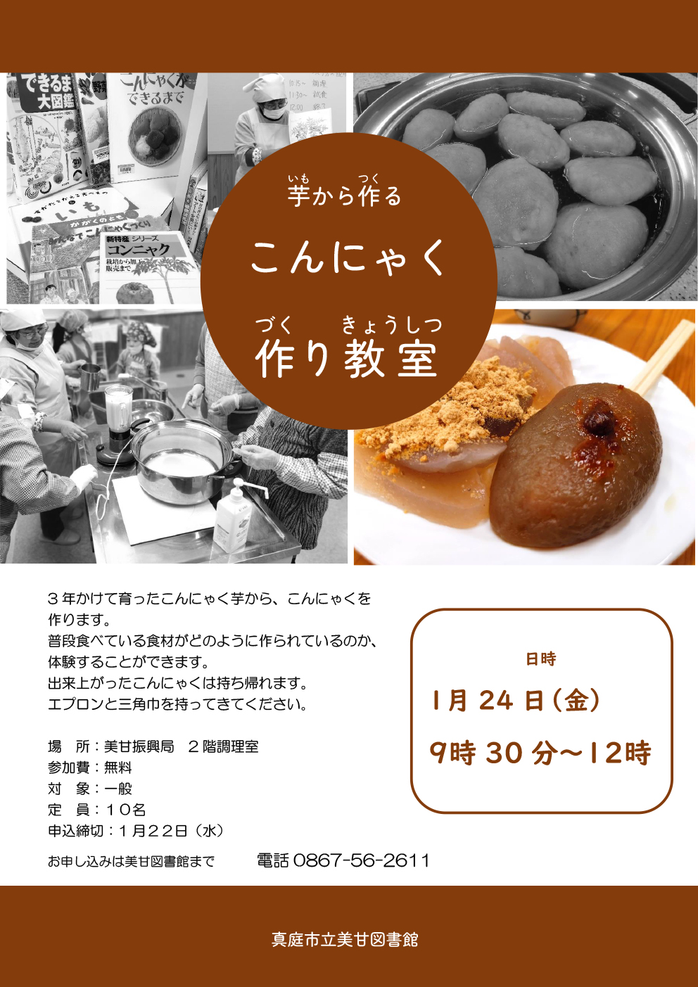 【日時】2025年1月24日(金)9時30分~12時【準備物】エプロンと三角巾【場所】美甘振興局 2...