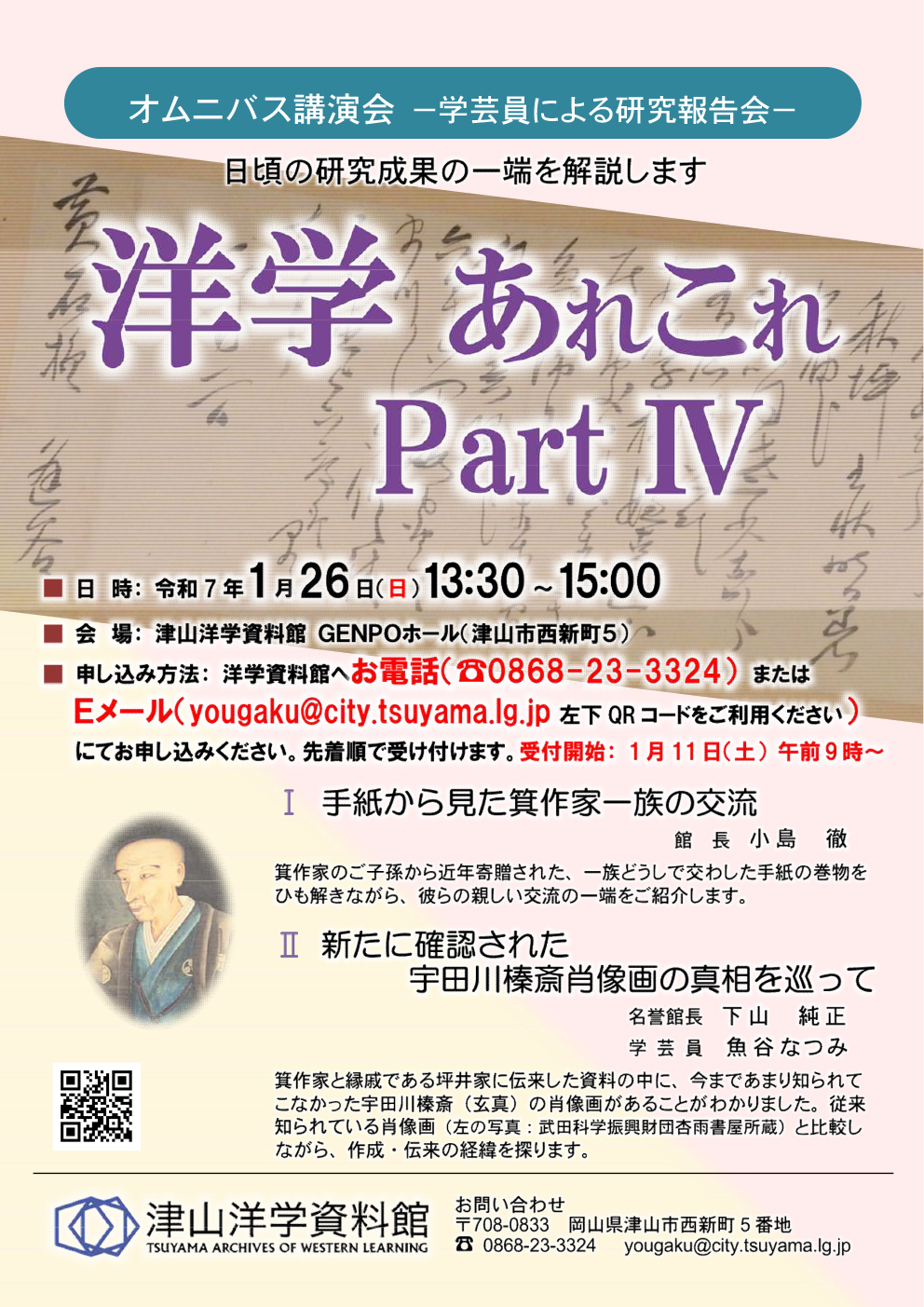 【日程】令和7年1月26日(日)【時間】13:30~15:00【会場】津山洋学資料館 GENPOホー...