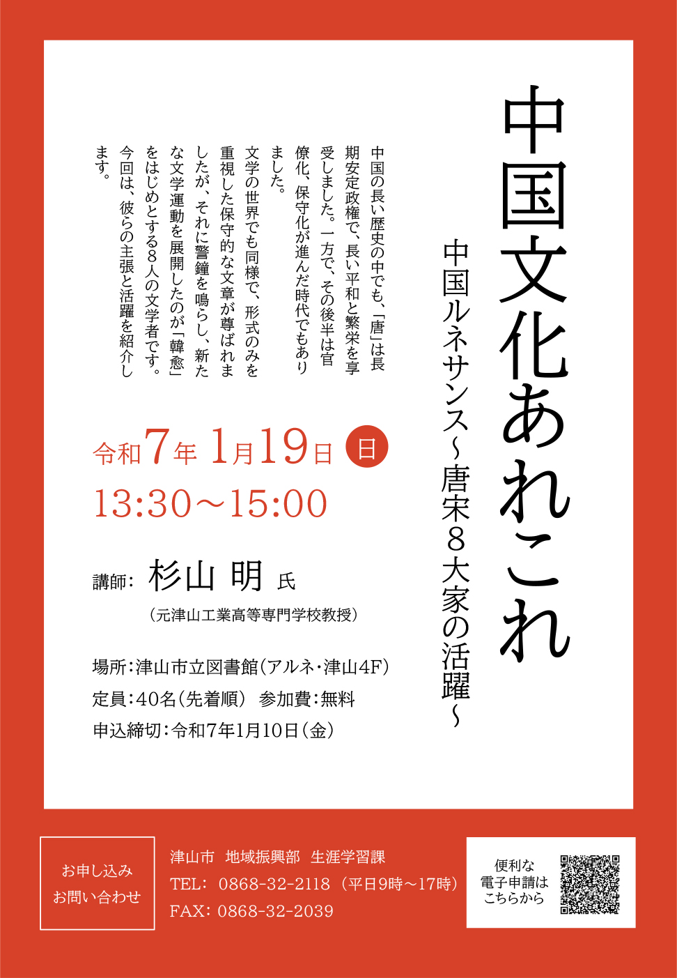 【日程】令和7年1月19日(日)【時間】13:30~15:00【定員】40名(先着順)【会場】津山市...