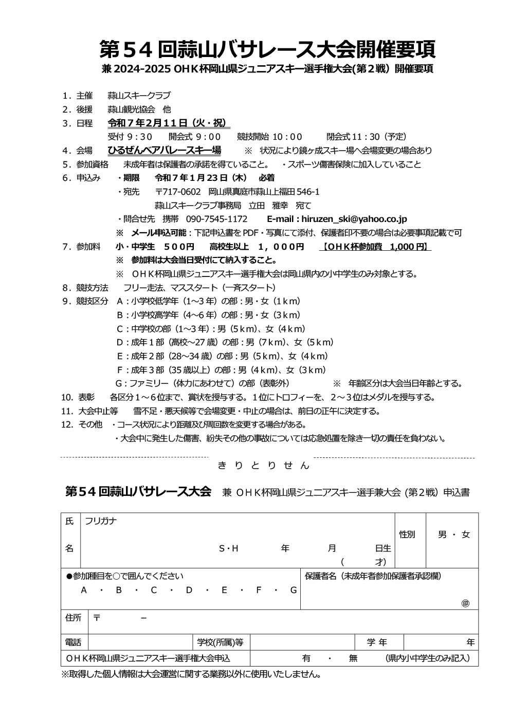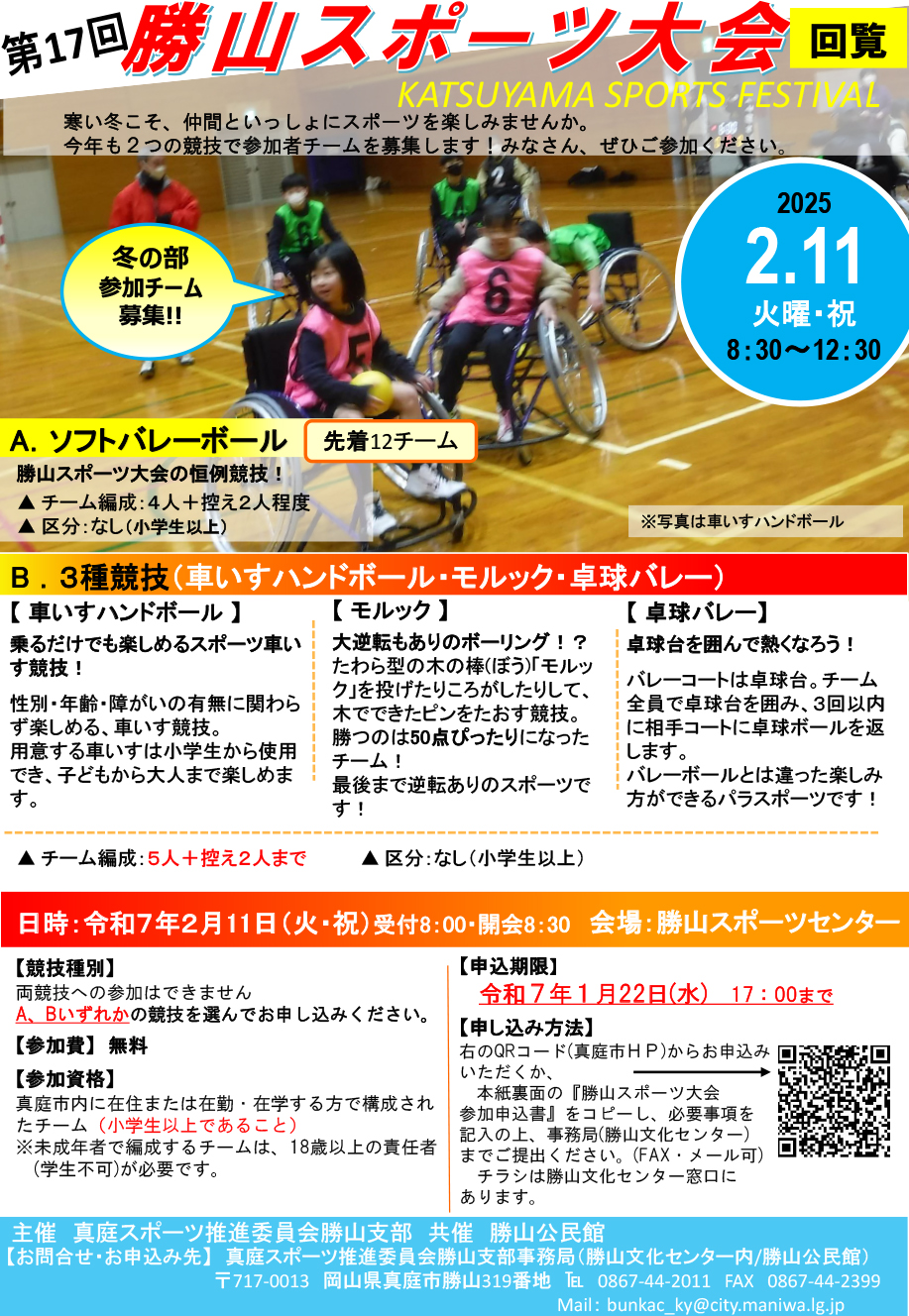 【日程】令和7 年2月11 日(火・祝)【時間】受付9時30分~ 競技開始10時~【申込期限】令和7...